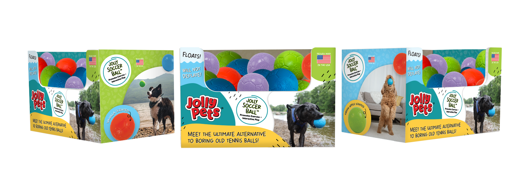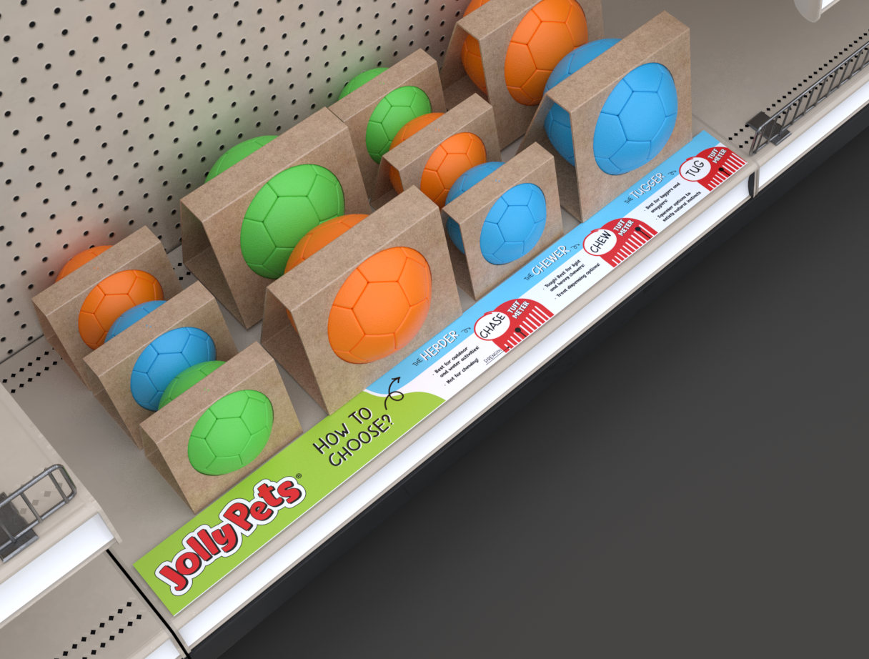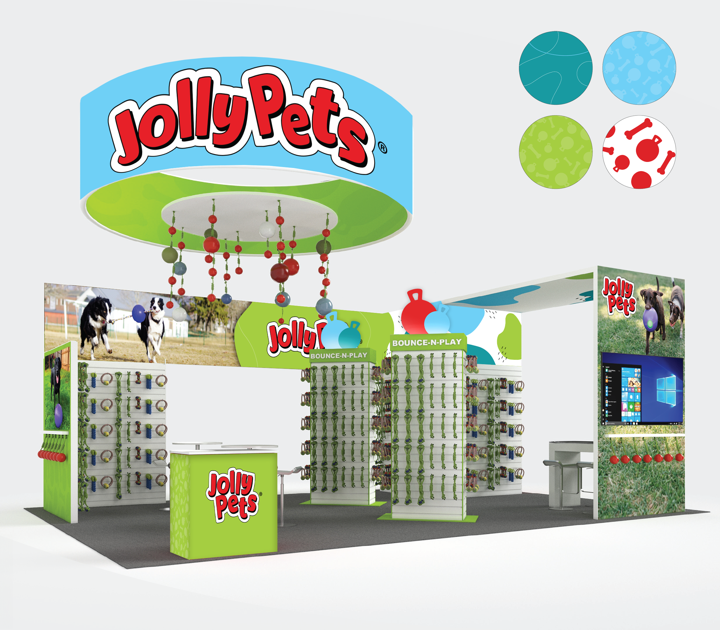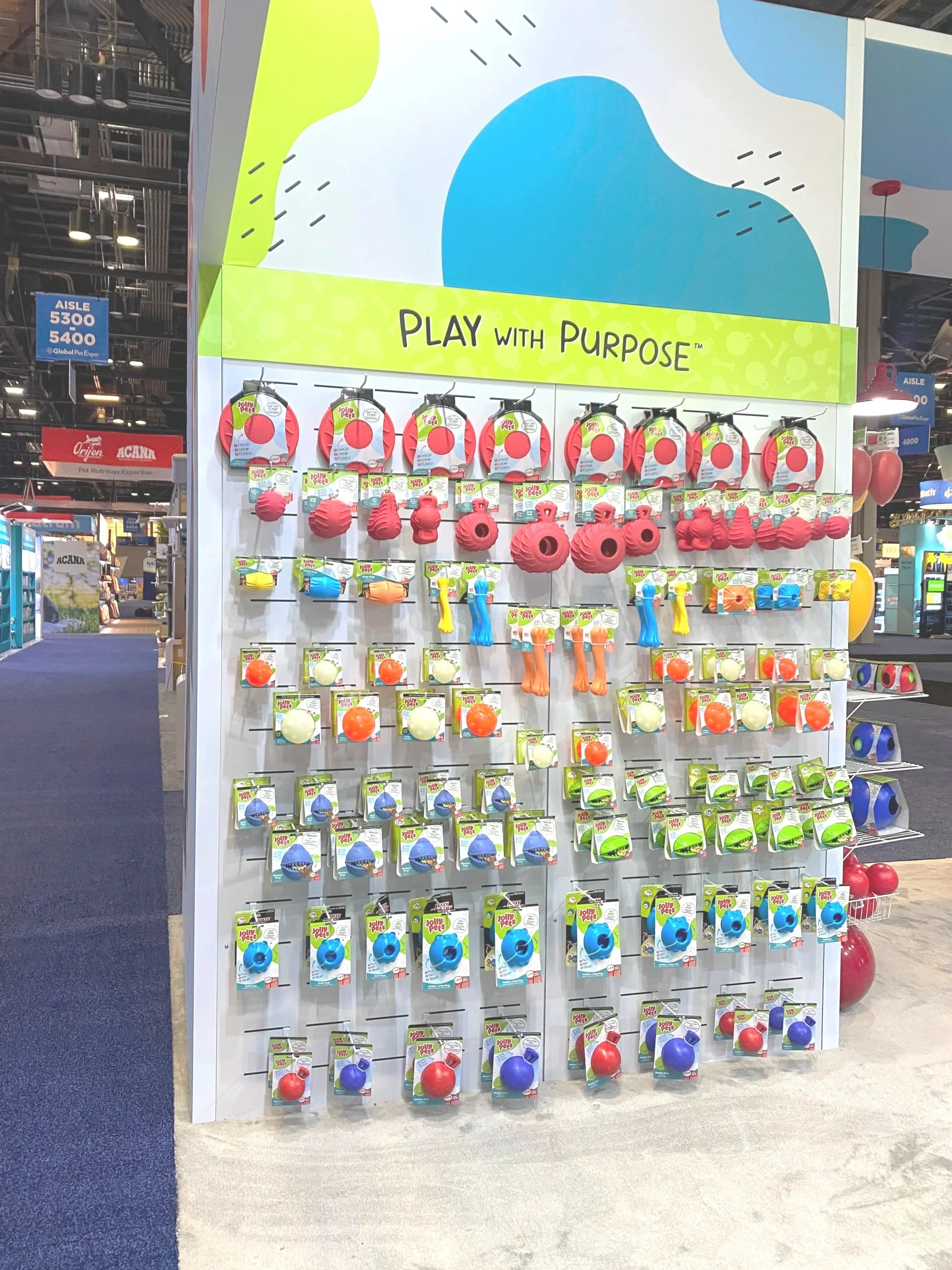 These tradeshow installations showcased the full scope of the 2023 Jolly Pets rebrand, which I spearheaded by redesigning Jolly Pets’ complete toy packaging line. The booth design challenged me to create a visual system that could highlight each brand's unique identity while maintaining a unified aesthetic that reflected Jolly Pets’ commitment to quality and innovation. From concept through production, I managed every aspect of the graphic design process, ensuring that their tradeshow presence not only attracted attention on a crowded show floor but also effectively communicated our product stories and brand values to retailers and industry professionals.